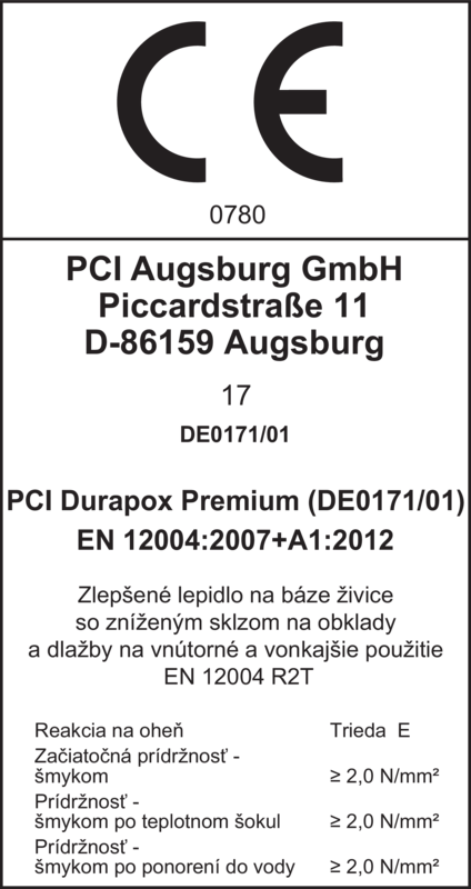 - Skúšaná podľa DIN EN 12004: PCI Durapox Premium (Multicolor) zodpovedá požiadavkám R2T.
