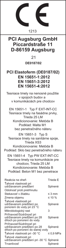 Vyhlásenie o parametroch EN 15651-1, -3, -4