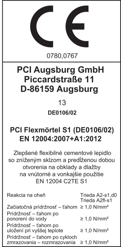 - Zodpovedá C2TE S1 podľa DIN EN 12 004 a "Smernici pre flexibilné malty".