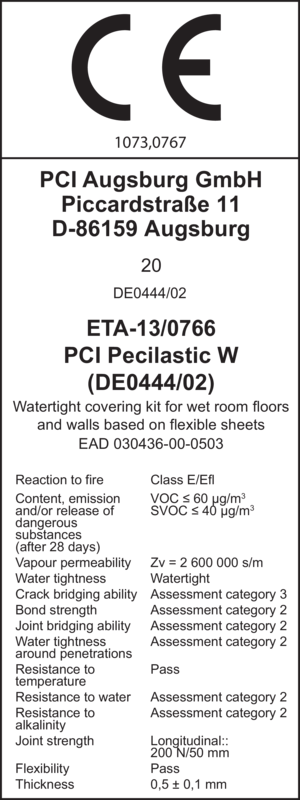 - Pre triedy pôsobenia vody W0-I, W1-I, W2-I podľa DIN 18534;